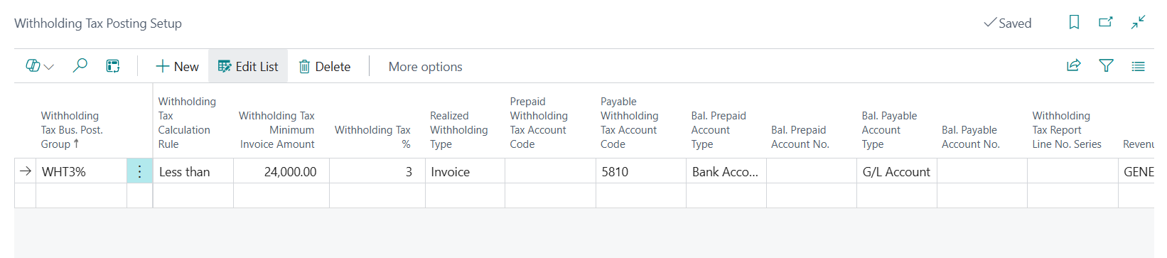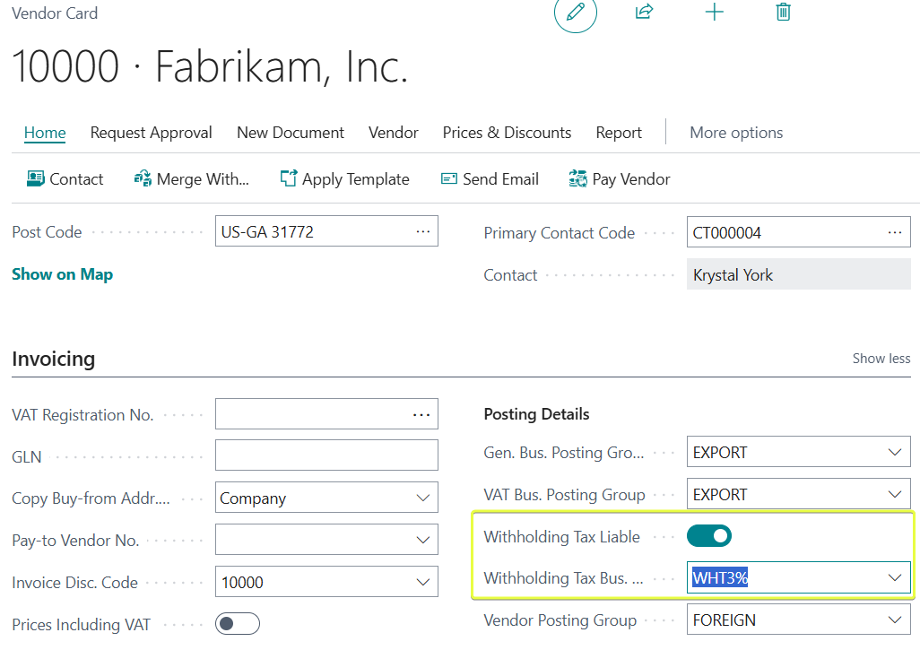- Withholding Tax Bus. Post. Group and apply it to vendors that are subject to withholding tax.