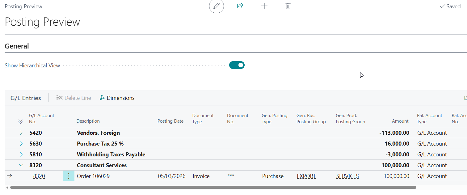 To enable withholding tax calculation, open the General Ledger Setup page and turn it on.